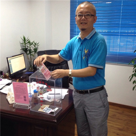 2014年10月22日下午,乔尼亚投资管理有限公司(0027号爱心箱)也伸出援手,加入了基金会“零钱随手捐”献爱心活动。该活动所筹集之善款用于资助贫困残疾人进行助学、助养。扶残助残,功德无量!感谢马总!