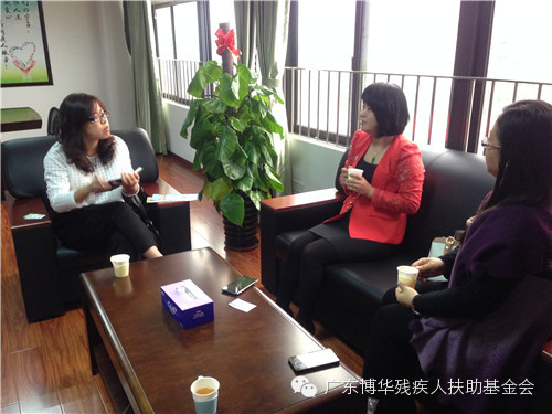 2014年11月12日下午,中山商报李记者与中山市千色绘服务中心张总来到本基金会办公室与邓妙华理事长、田国军副理事长及钟秋兰执行秘书长就本基金会成立的宗旨,开展的项目及帮扶的对象进行了详细的交流,并初步商讨了今后可共同开展的公益项目。