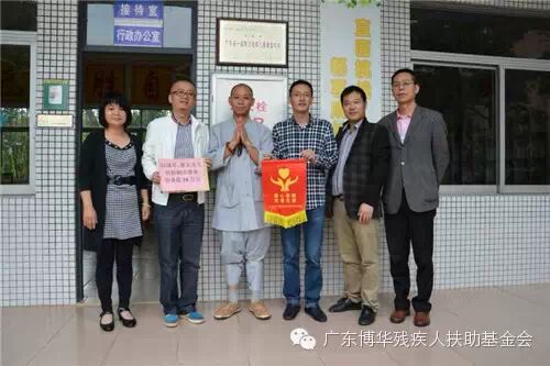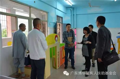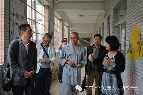 2014年11月13日下午,香港宏成法师、本基金会首席顾问国务院全国千县工程办公室领导钱海东先生、理事长邓妙华女士、副理事长田国军先生、童兵先生、中山市嘉诚文具有限公司总经理徐济洪先生到中山市小榄博华特殊教育学校探访特殊学生,了解他们生活学习的情况,在宏成法师的见证下,田国军先生、童兵先生以个人名义捐赠人民币十万元,用于购买学校区角游戏器材。感谢法师!感谢田总!感谢童总!