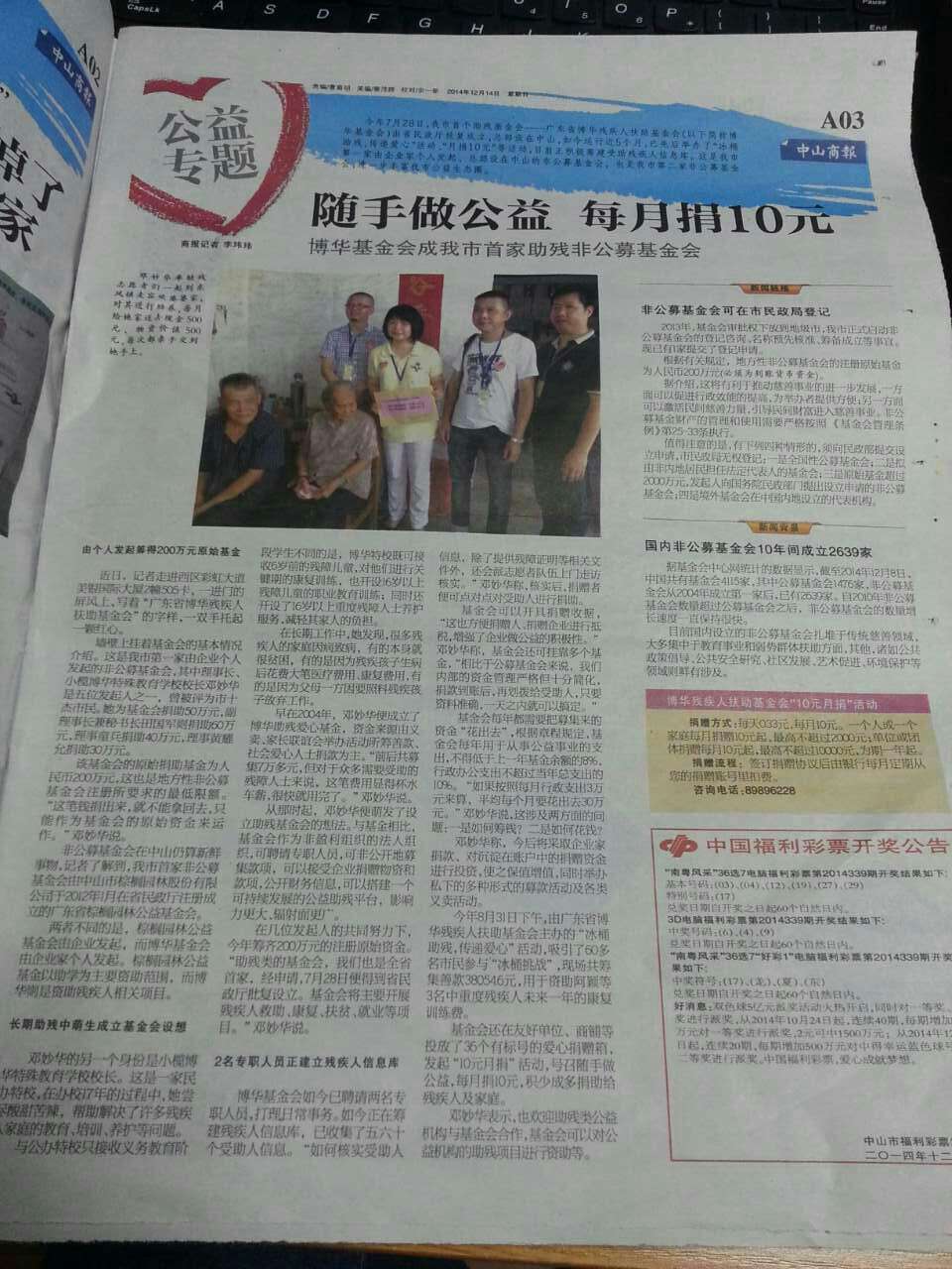 ——广东省博华残疾人扶助基金会10元月捐活动