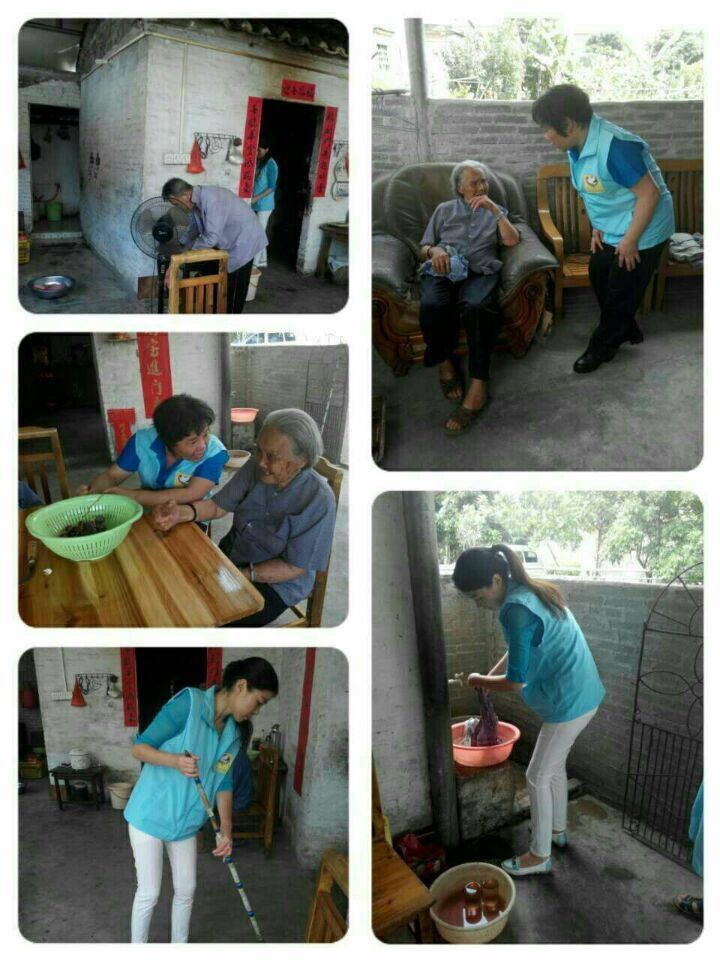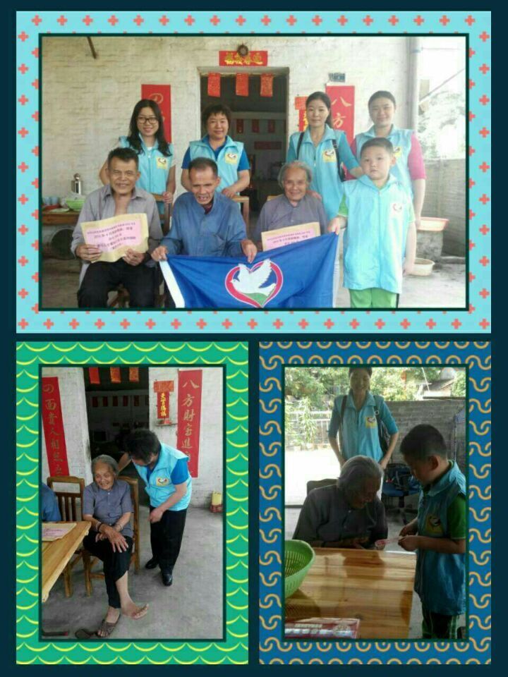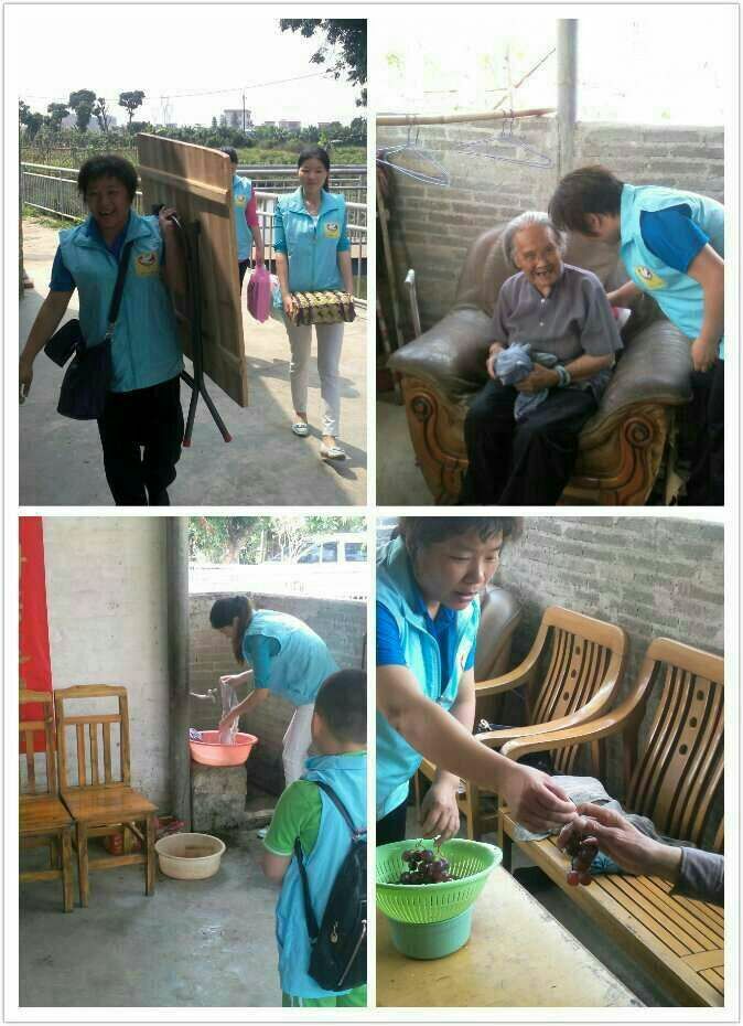 下午两点多,来到阿满阿富家,阿满在他们家外面的树下坐着,喝着小酒,看到我们到来高兴地起来和我们一起回家,麦婆婆笑容满面地迎出来,那是如见亲人般的笑容。义工们放下带去的物资,马上投入到整理、清洁工作:洗衣、扫地、清洁厨房、厕所,把物资分类放好,洗干净葡萄,放在带去的新桌子上,麦婆婆一家围着桌子坐下,阿满看到新桌子特别喜欢,说:“这个桌子好好。”还学着说:“基金会。”我们搬开桌子拍完合照后他马上把桌子搬回来;阿富今天最开心的是我们带去了他爱抽的香烟,他接过香烟马上把它藏起来;麦婆婆今天精神很好,她带着宠爱的语气说着阿富的乖巧、阿满的调皮,还和我们分享了她昨天参加了广东省道德模范与身边好人交流活动……