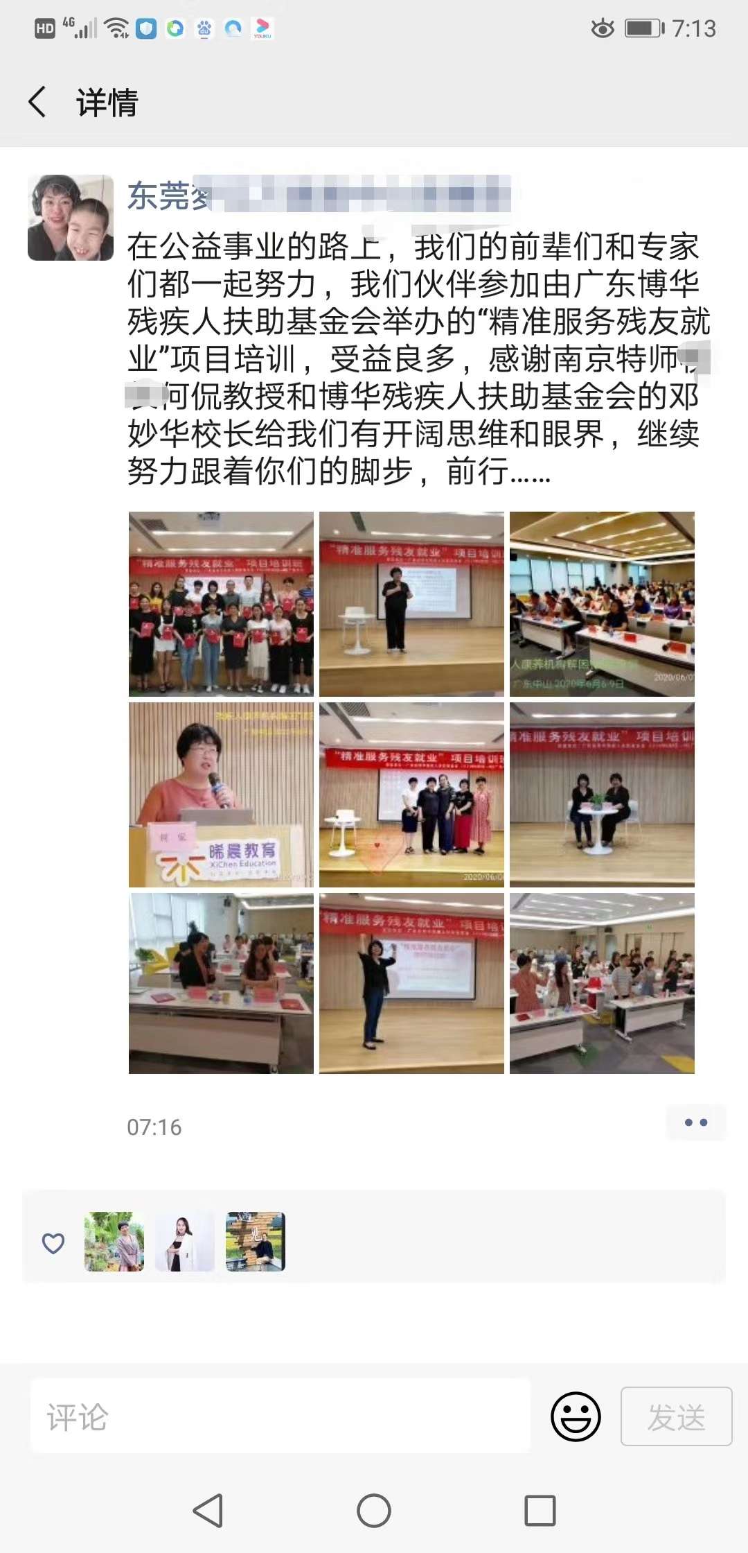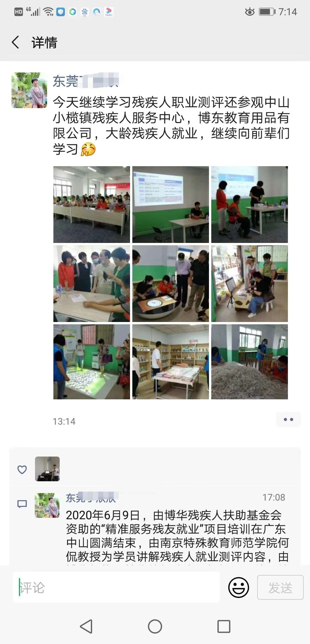 2020年6月10日,由本基金会资助的“精准服务残友就业”项目培训在广东中山圆满结束,该培训专家为学员讲解残疾人就业测评内容、如何根据测评结果精准安排残疾人就业以及演示了残疾人就业能力测评实操等,学员们获益匪浅。