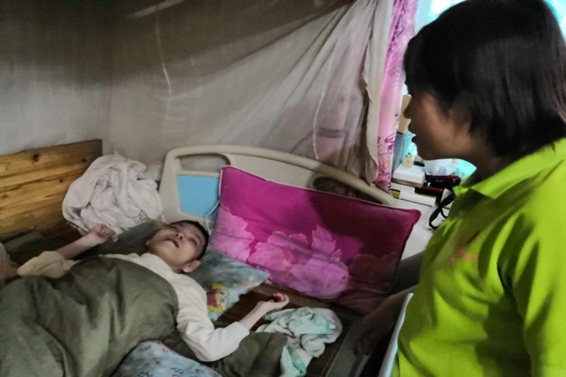 (黄淑杏,女,生于1994年,2015年8月开始助养至今,每月资助500元现金和物资。家住肇庆市鼎湖区坑口万福居委会地质疗养院宿舍。一级残疾,残疾证号:44120319941103122841,脑瘫,长期卧床、服药、使用纸尿片,无语言表达能力,母亲 体弱,妹妹就读高中,近70岁的父亲无工作,在家照顾妻女,全家靠母亲的退休金和低保户补贴维持生计。)