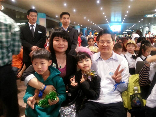 2014年4月2日,广东省委常委、常务副省长徐少华在2014年第7届“世界自闭症关爱日”活动中,与广东省博华残疾人扶助基金会理事长邓妙华及特殊儿童合影留念。