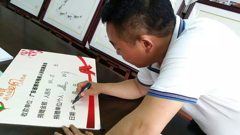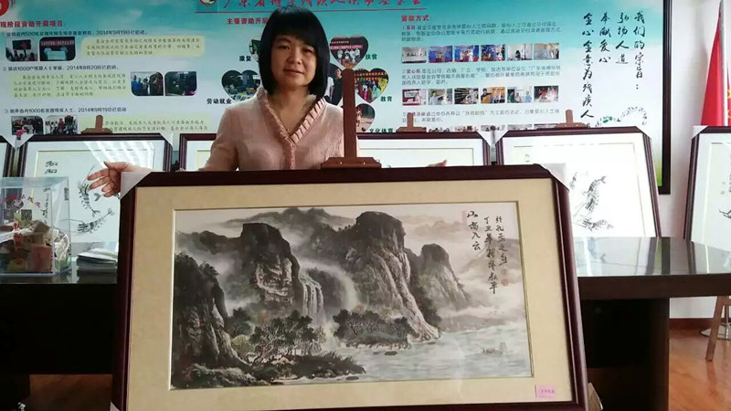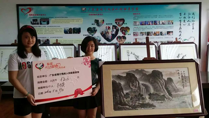 2016年5月8日两位爱心人士亲临省博华残疾人扶助基金会办公室认购爱心画作。