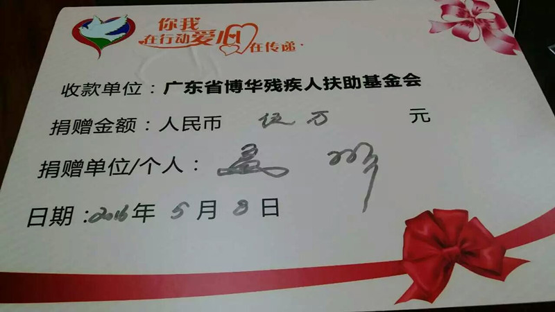1999年版5元人民币背面券画作者李叔平先生先后捐赠了价值人民币200万元画作给中山市小榄博华特殊教育学校和肇庆市鼎湖区博华残疾人康复中心,画作义卖所得善款资助博华贫困学生。藉2016年5月15日第26次全国助残日来临之际,特发起此义卖活动。