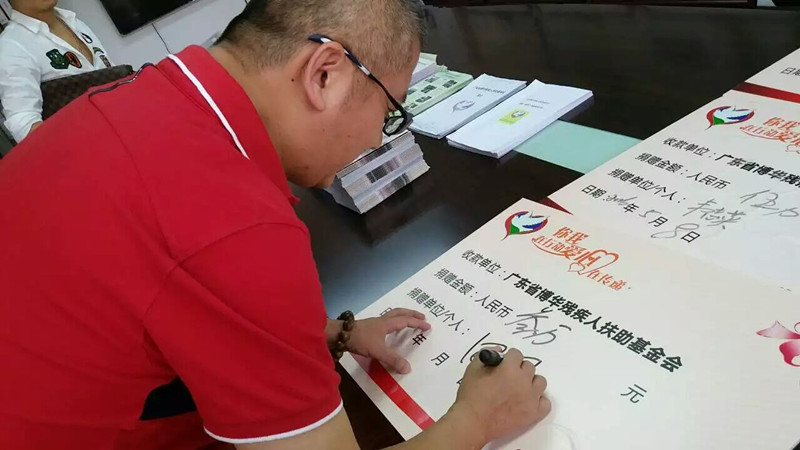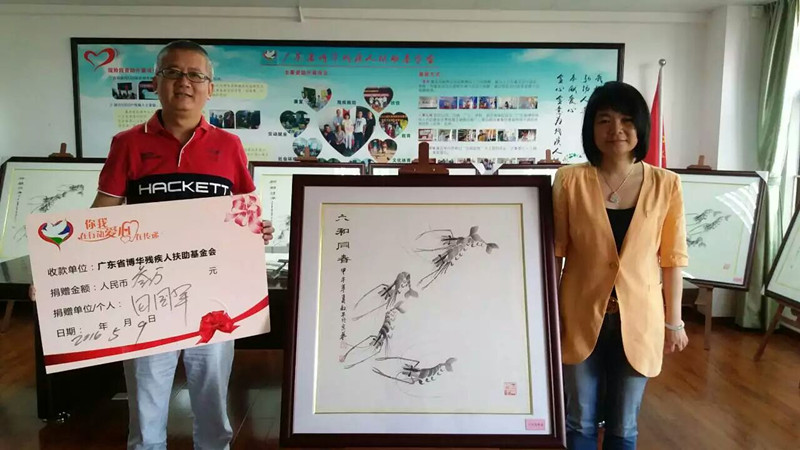 2016年5月9日爱心人士亲临博华残疾人扶助基金会办公室认购爱心画作。