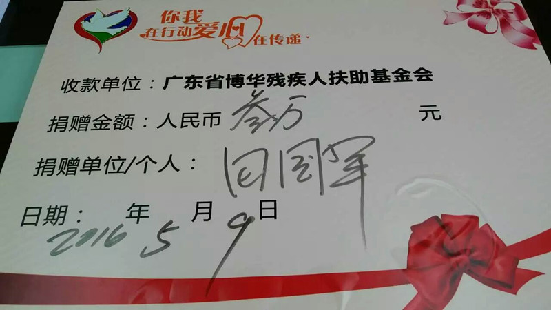 1999年版5元人民币背面券画作者李叔平先生先后捐赠了价值人民币200万元画作给中山市小榄博华特殊教育学校和肇庆市鼎湖区博华残疾人康复中心,画作义卖所得善款资助博华贫困学生。藉2016年5月15日第26次全国助残日来临之际,特发起此义卖活动。