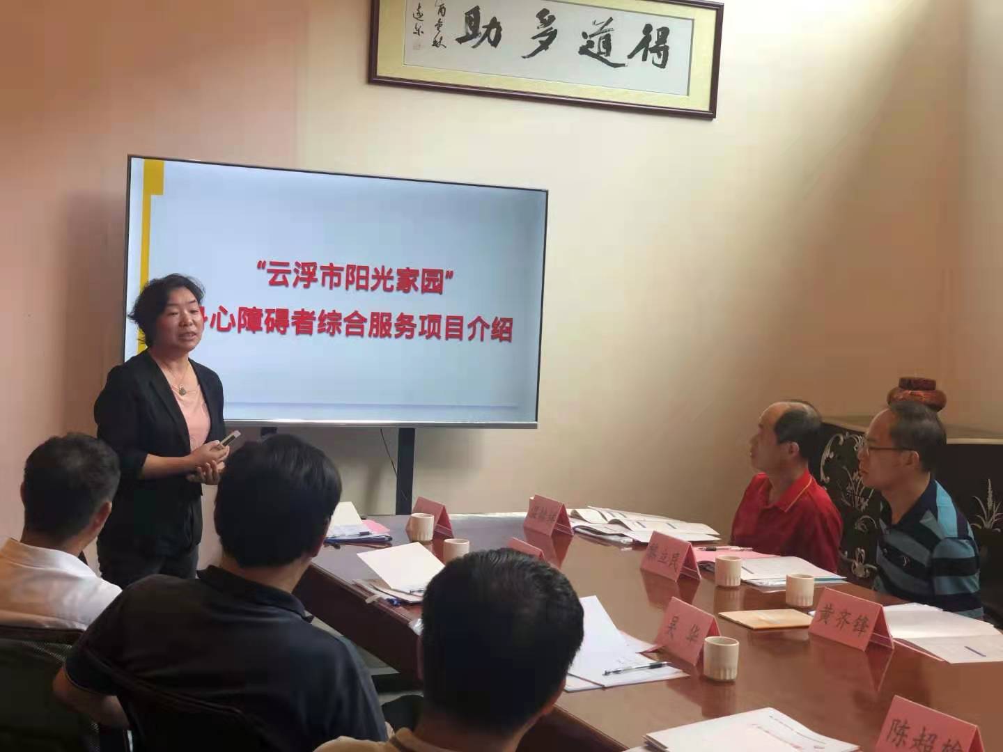2021年5月19日下午,佛山市残疾人联合会理事长黄齐锋等一行七人,在罗定市副市长吴华、罗定市残疾人联合会理事长李周泉等领导的陪同下莅临罗定市华阳投资有限公司,就本基金会支持的“云浮市阳光家园项目”参观交流。基金会执行秘书长钟秋兰在会上详细介绍了“云浮市阳光家园”项目的情况。该项目的创新理念与运营模式得到与会领导的充分肯定!