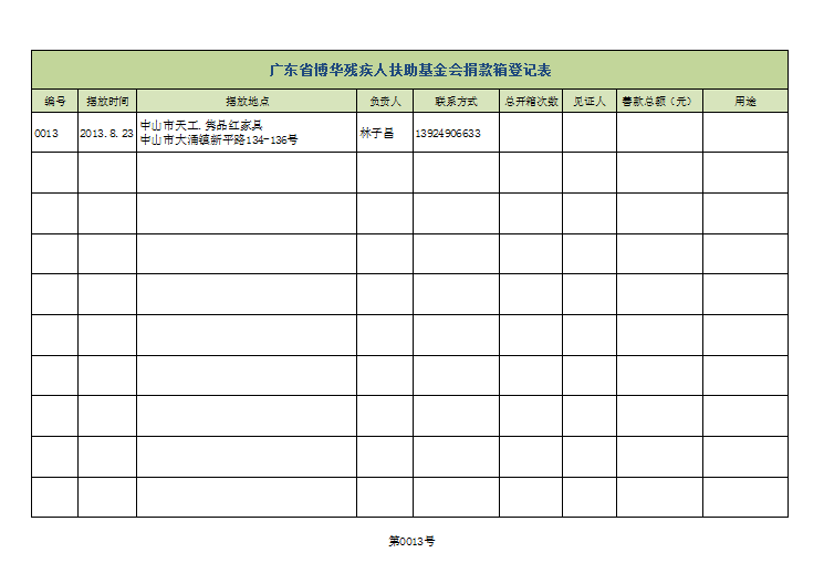 2014年8月23日,中山市天工.隽品红木家具(第0013号爱心箱)也伸出援手,加入了基金会“零钱随手捐”献爱心活动,林老板、员工及到店的顾客纷纷献出爱心。该活动所筹集之善款用于资助贫困残疾人进行康复教育。扶残助残,功德无量!感谢林老板!