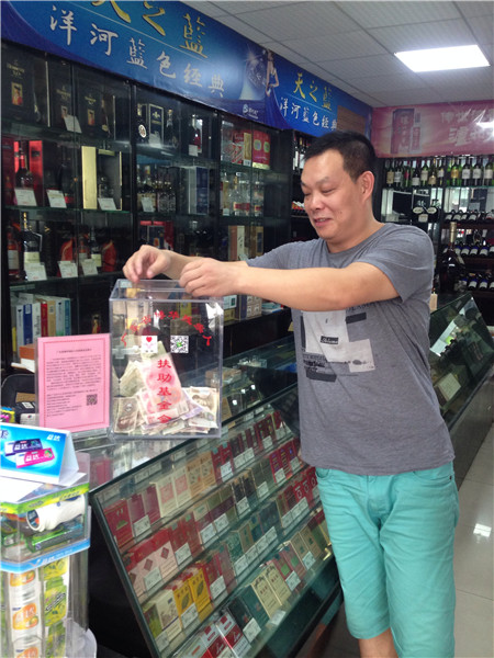 2014年9月15日下午,中国梦·梦之蓝中山市东区东悦贸易行(0019号爱心箱)也伸出援手,加入了基金会“零钱随手捐”献爱心活动。该活动所筹集之善款用于资助贫困残疾人进行康复教育,扶残助残,功德无量!感谢胡总!